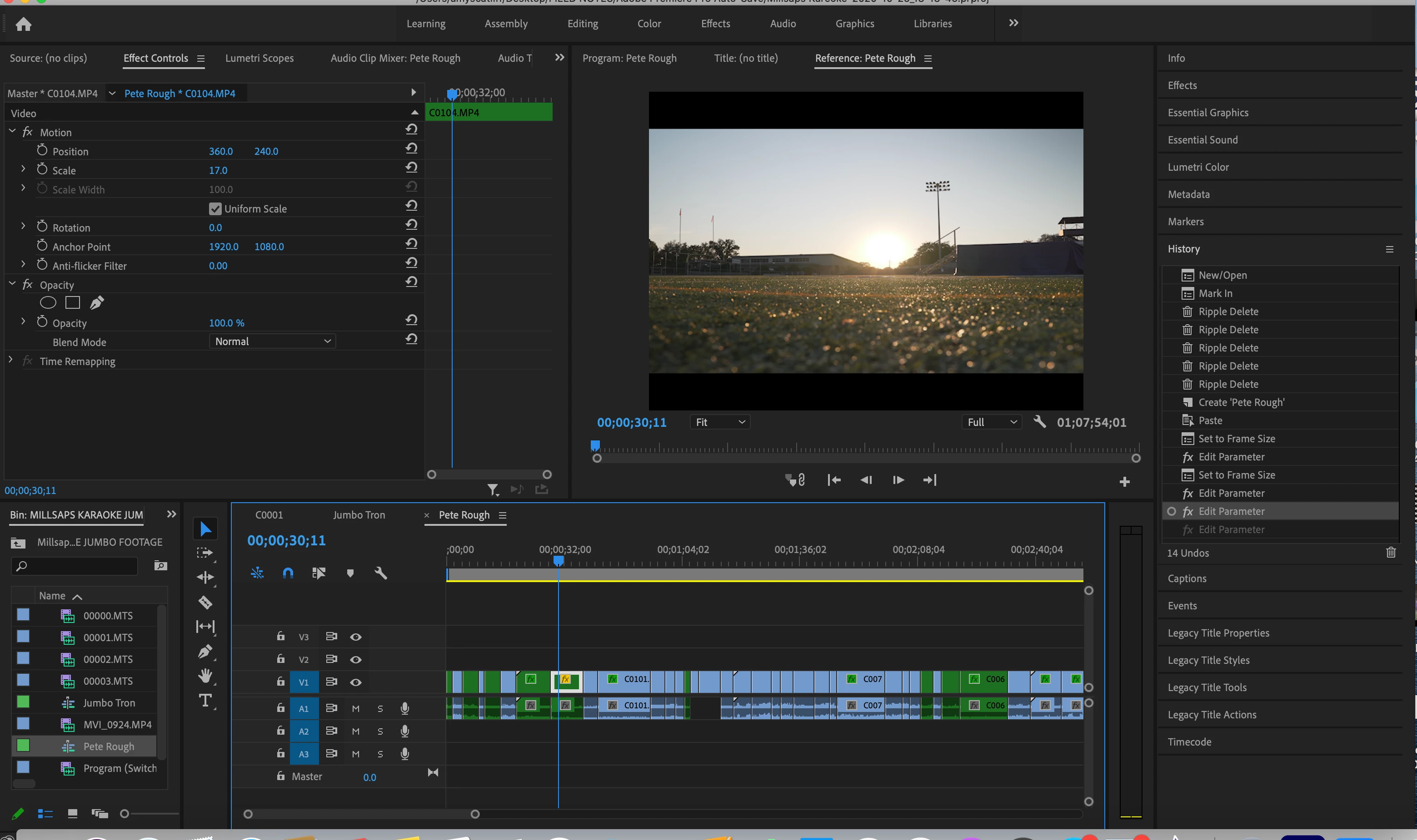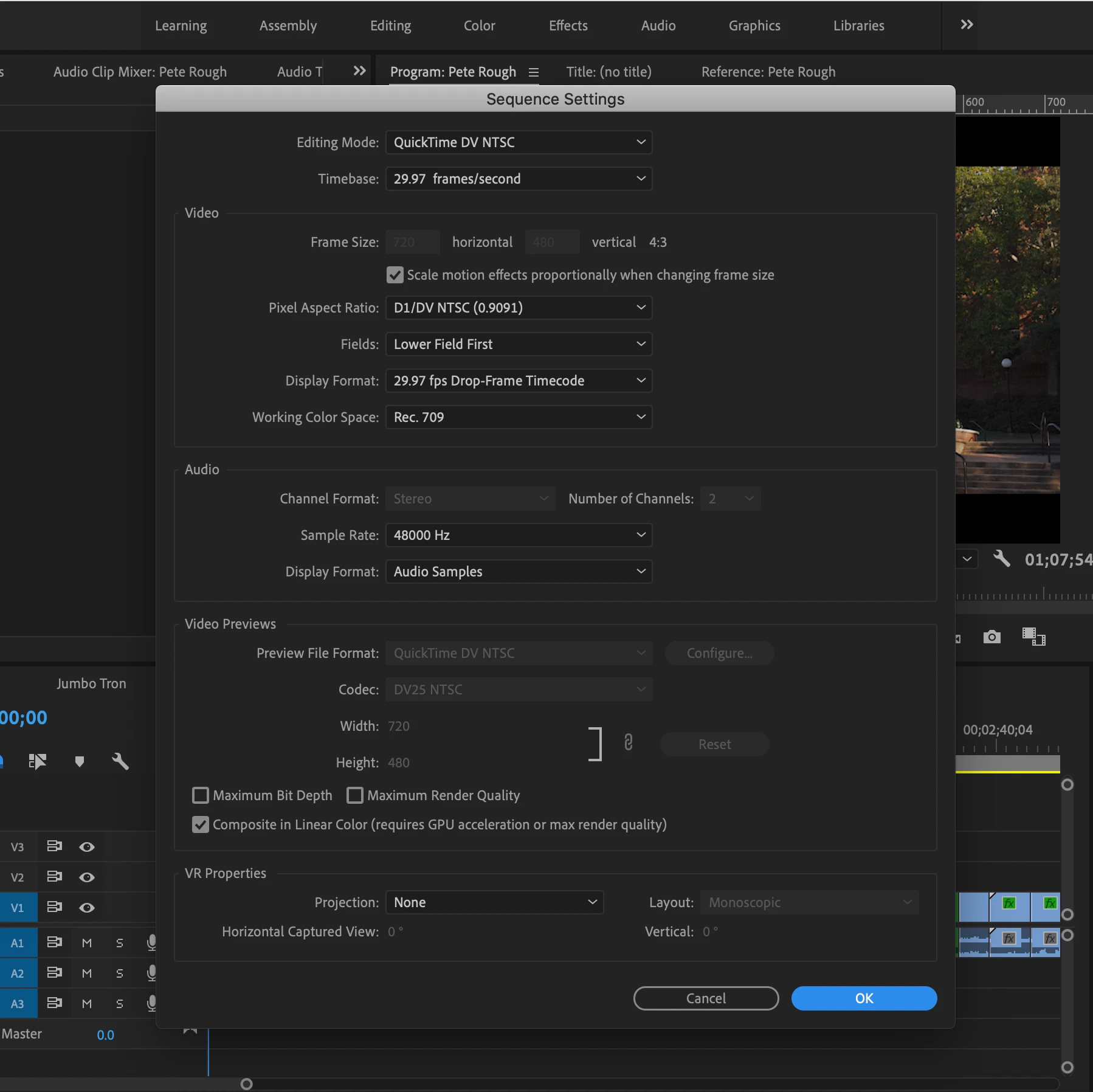 This is what the timeline looked like. So I went back to an earlier autosave and created a new sequence to export as an mp4 to a high-quality HD setting.