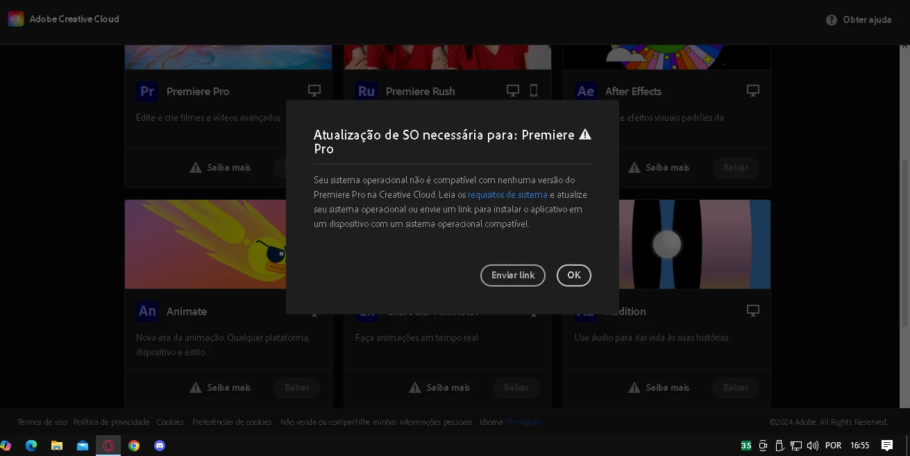 sistema operacional não é compatível com nenhuma versão do Premiere Pro na Creative Cloud.