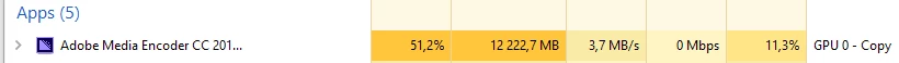 When I wanna export 5.7k using HEVC and 100Mbit bitrate, first ~10 seconds of rendering are pretty fast, for 10 minute VR video with some effects it says remaining time is 40-50 minutes and it's ok. But after 10 seconds preview freezes, encoding slows down extremely, remaining time grow 2-5-10-more hours and seems endless.