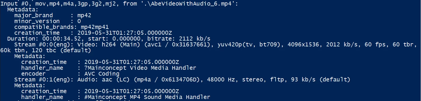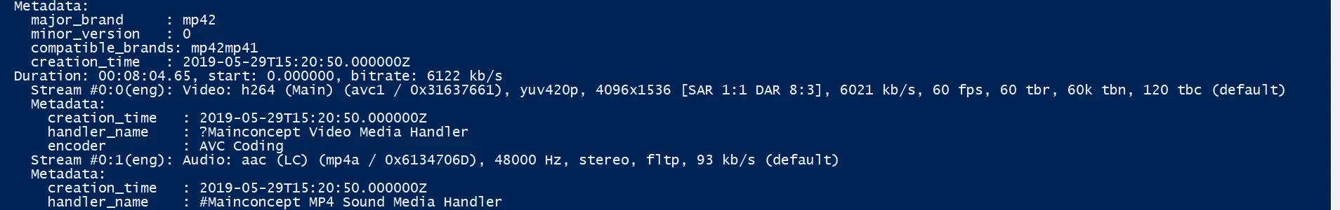 Much more manageable bitrate, but as you see it's yuv420p(tv, bt709).