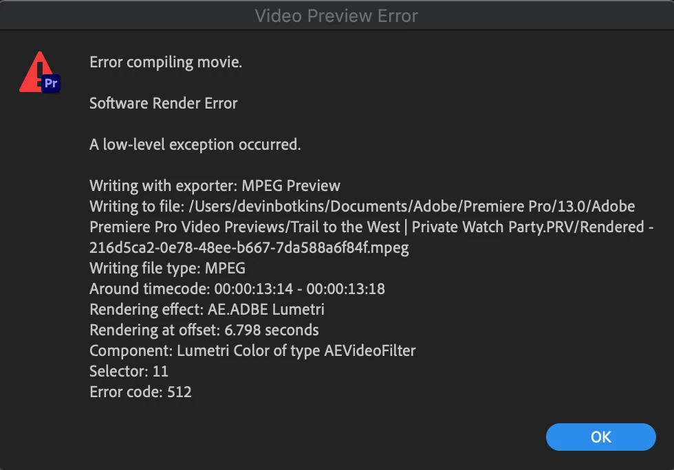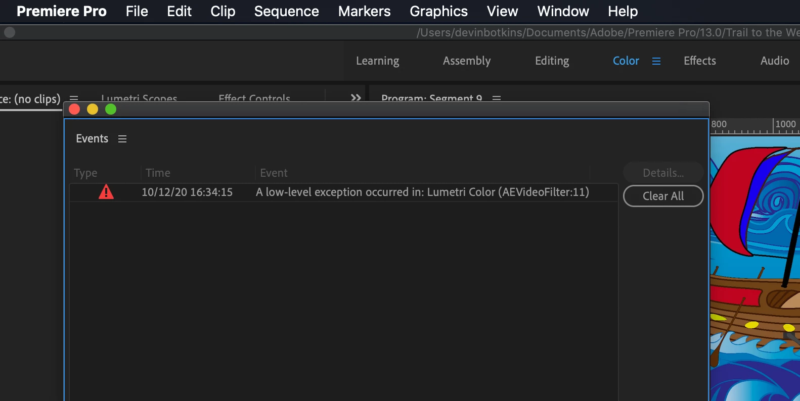 I made an adjustment to the exposure of an illustration and that may have triggered the error “Lumetri Color of type AEVideoFilter”. The illustration looks more bright in the premier pro viewer. I had to replace a few files in the sequence and now my audio is playing and the video is processing. Thanks for your response.