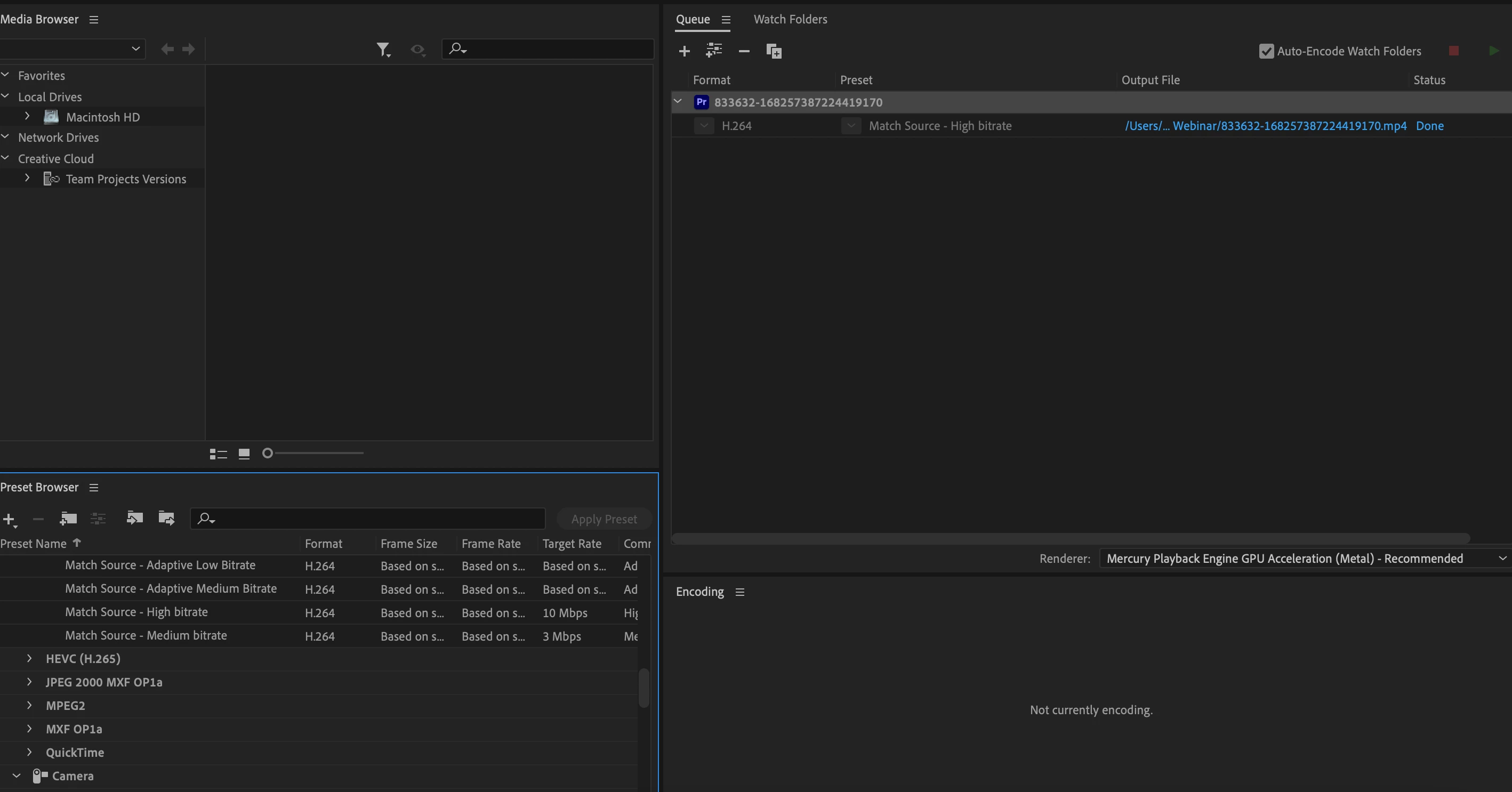 standard export presets missing premier pro after update