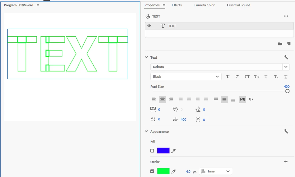 When you add an Inner/Centre Stroke to text with no fill, it results in a specific appearance (see screenshot below). Rather than creating a text image file (in Photoshop) and then importing it into Adobe Premiere, is there a way to avoid this issue?