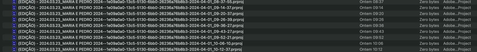 All auto-saves have the same message, and now has "zero bytes", before they were projects with 10mb.