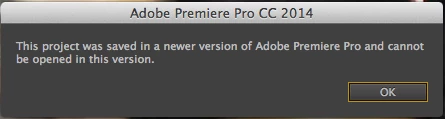 "The project was saved in a newer version of premiere pro and cannot be opened in this version."