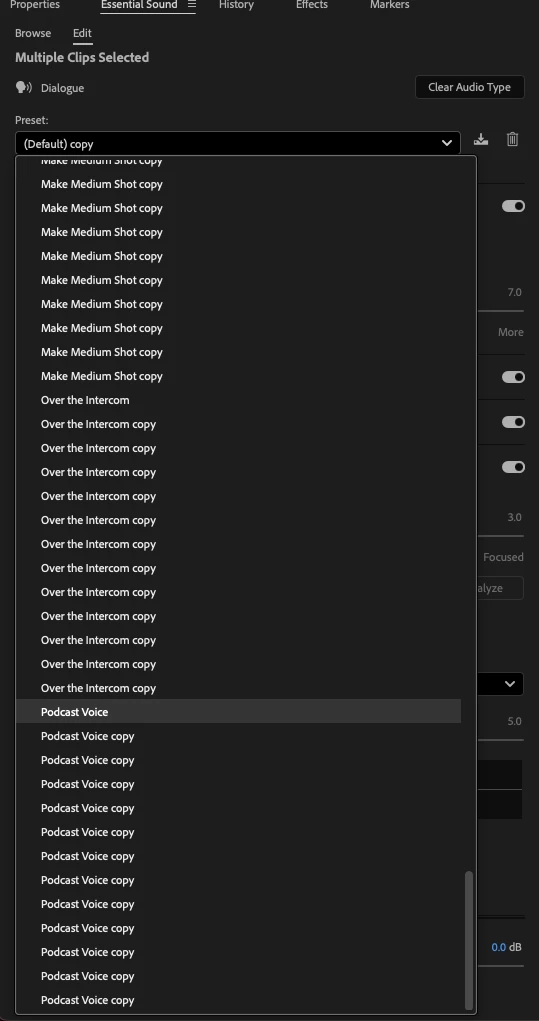 There are unexpected duplicate presets in my essential sounds panel.
