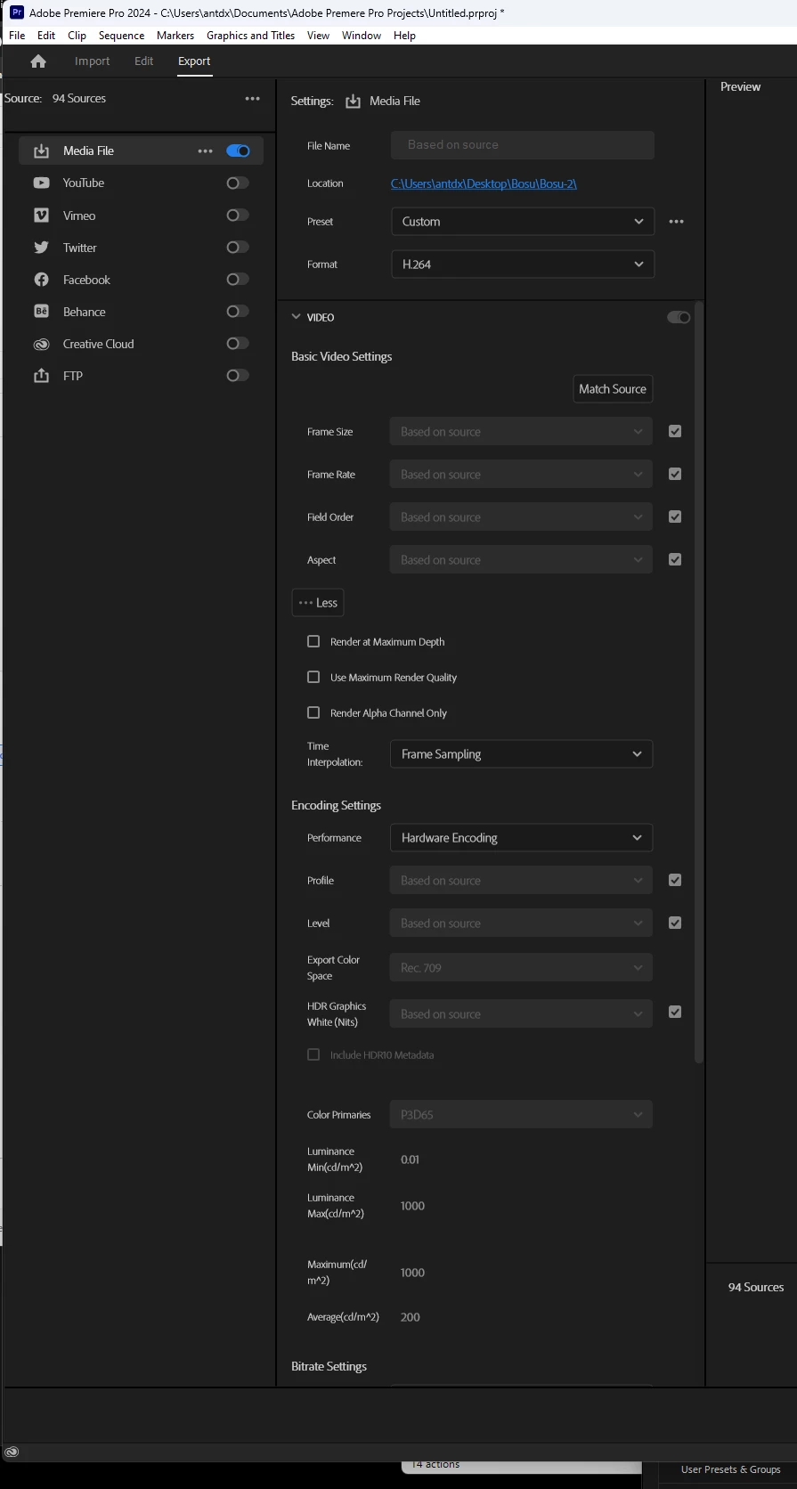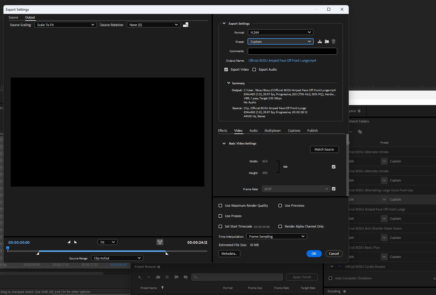 There is also no way to set the Source Range when you select multiple clips on the Project to Export.