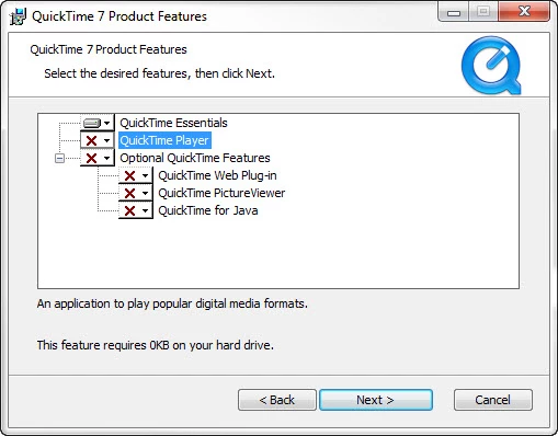 Avoiding QT in this business is unavoidable, fortunately you can install just the essentials via the custom button, (the core parts that are used by the application to function, minus the parts that are no longer secure - see image below).  This is the current recommendation from both Avid and Sorenson, whom require these components to function: