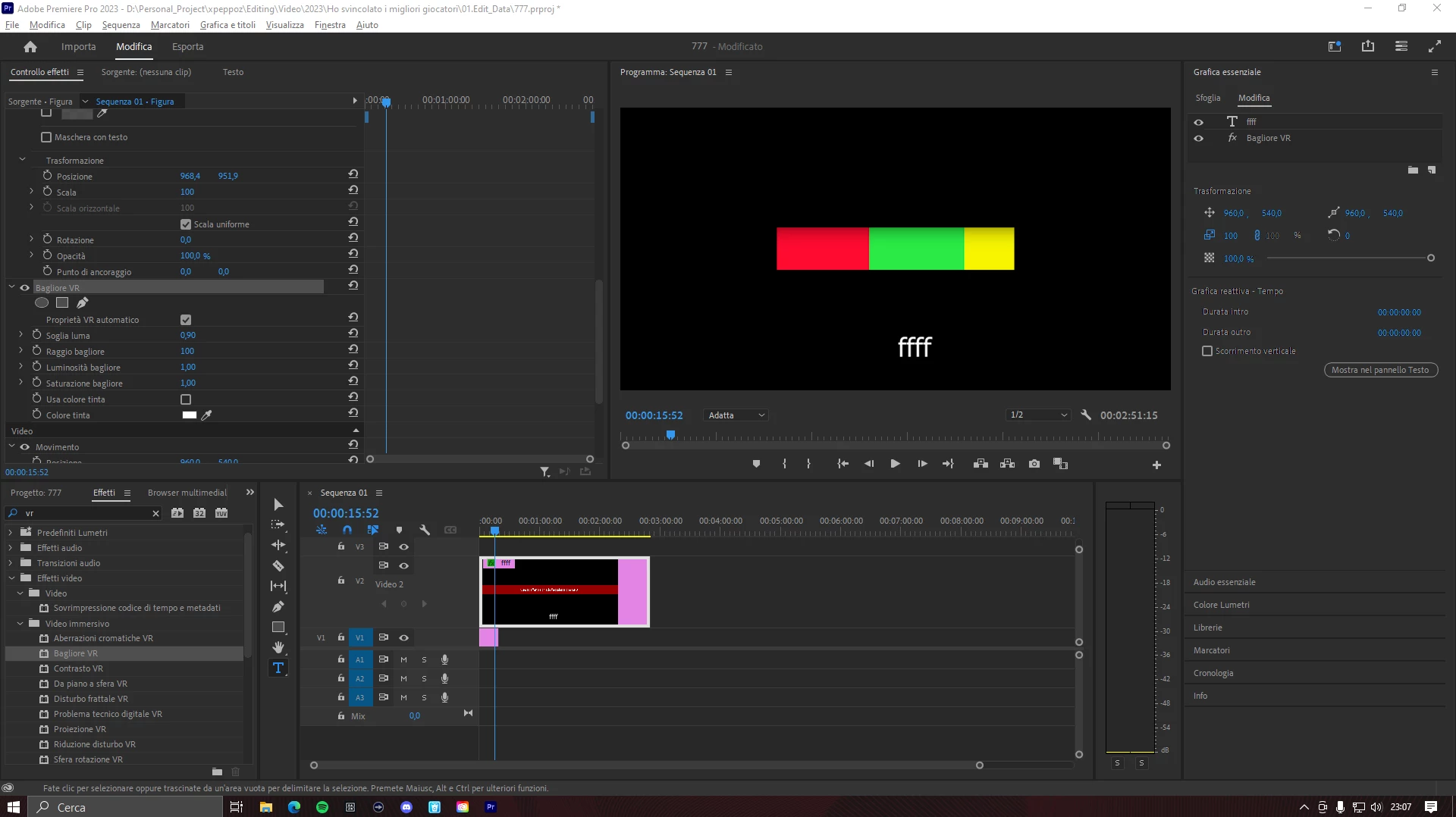 I've been trying all day but nothing, I wanted to add the "VR GLOW" effect to my text and before it worked, then it started to go no more and give the error not in the preview of the sequence but in the timeline itself, I attach a screenshot,