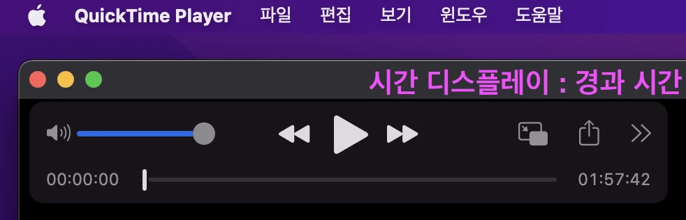 if i open MOV file and display timecode set to Elapsed Time. it will be displayed 01:57:42.