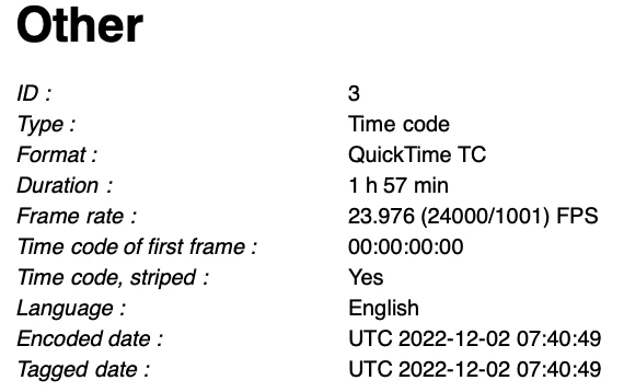 Timecode Issue on Quicktime player on MAC