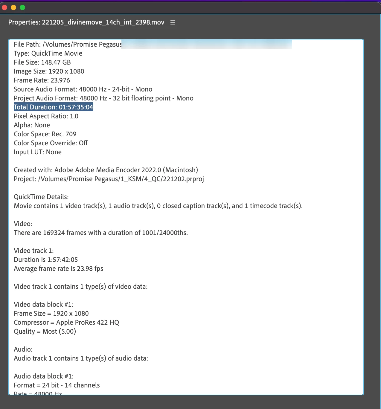 i attached some photo of reference. (i import this MOV file to PR. and look at properties... mediainfo...)