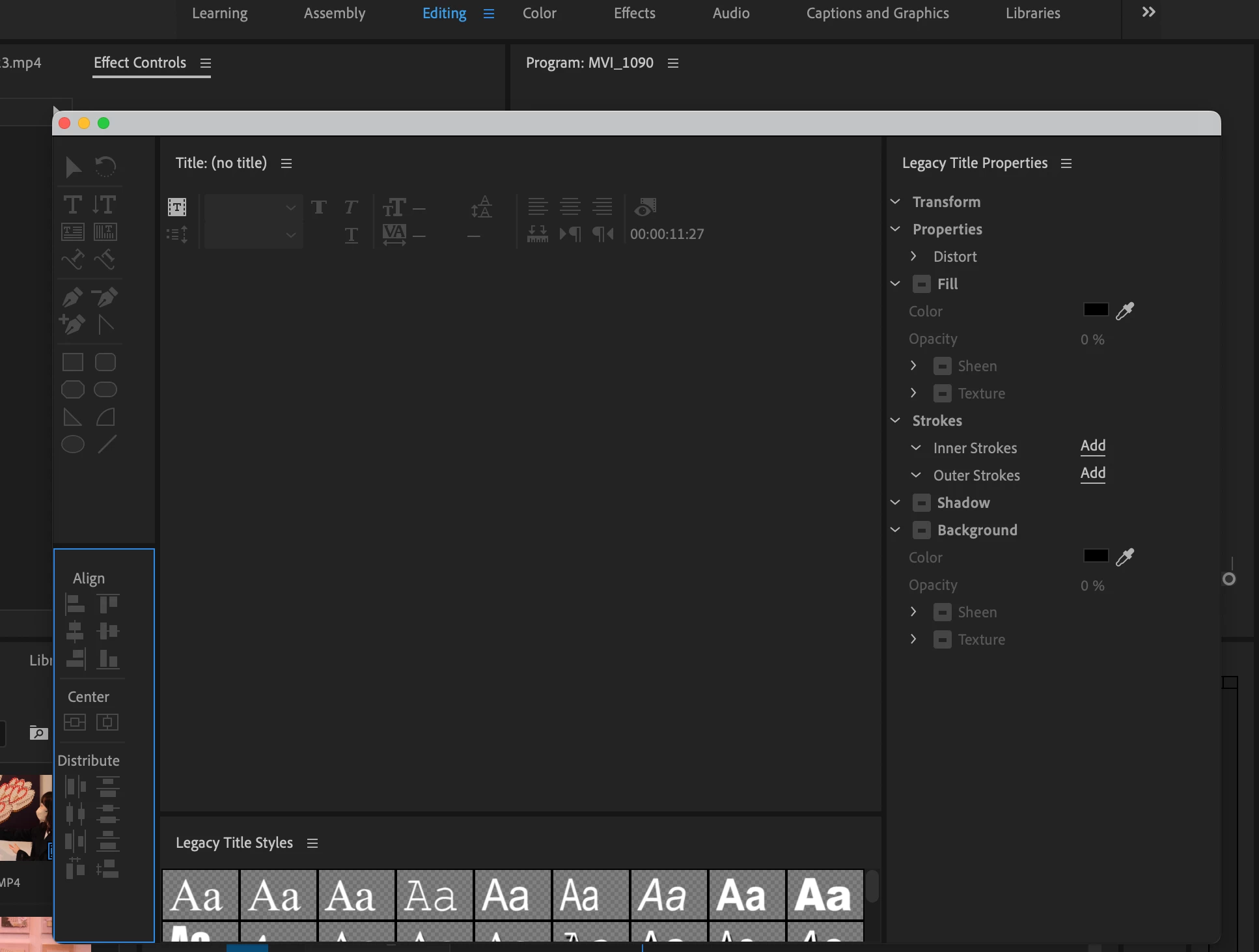 If you do want to use the LEGACY Titler start with file > New > Legacy title.