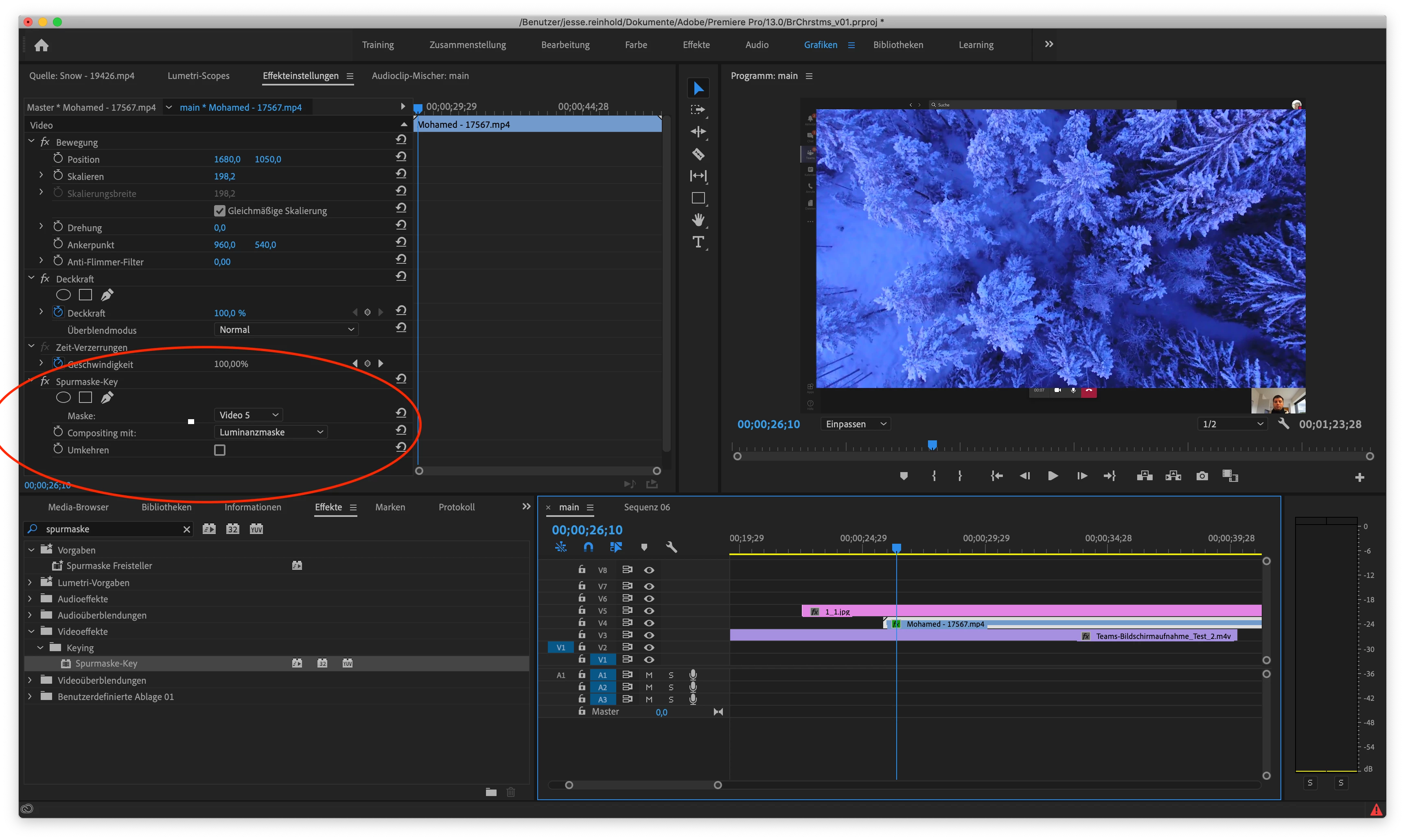 I would like to use track matte to clip a video in a project (I try to produce a "funny" teams-conference). therefore I