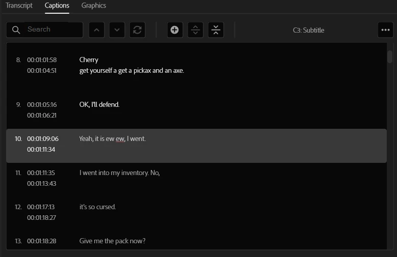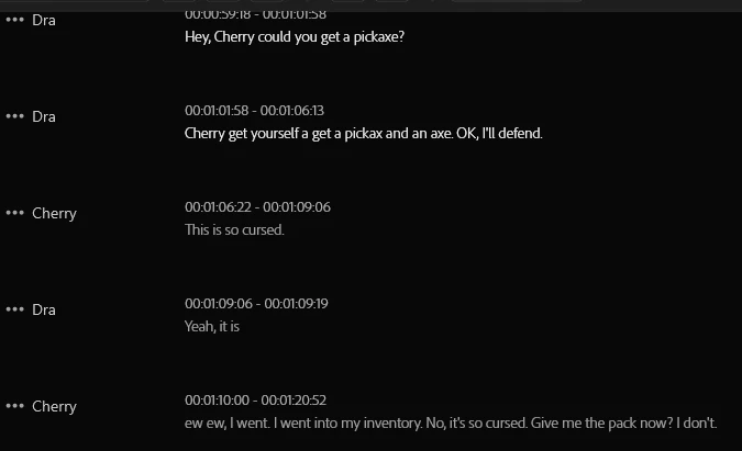 So I am editing a video and trying to use the transcribe feature. The video is relatively long and I was using the transcribe feature on one audio track of me and my friend talking. I edited it all so the multiple people would be separate. When I put the transcription to text on the timeline it didn't regard the multiple people talking and put it all in one subtitle channel. I know I am not the best at explaining this. I was wondering if there was a way to get it so that each person's transcription could automatically be on its own audio track or just select all of the audio from one person to be able to edit quickly (fonts and stuff). I will provide screenshots for clarity of the situation.