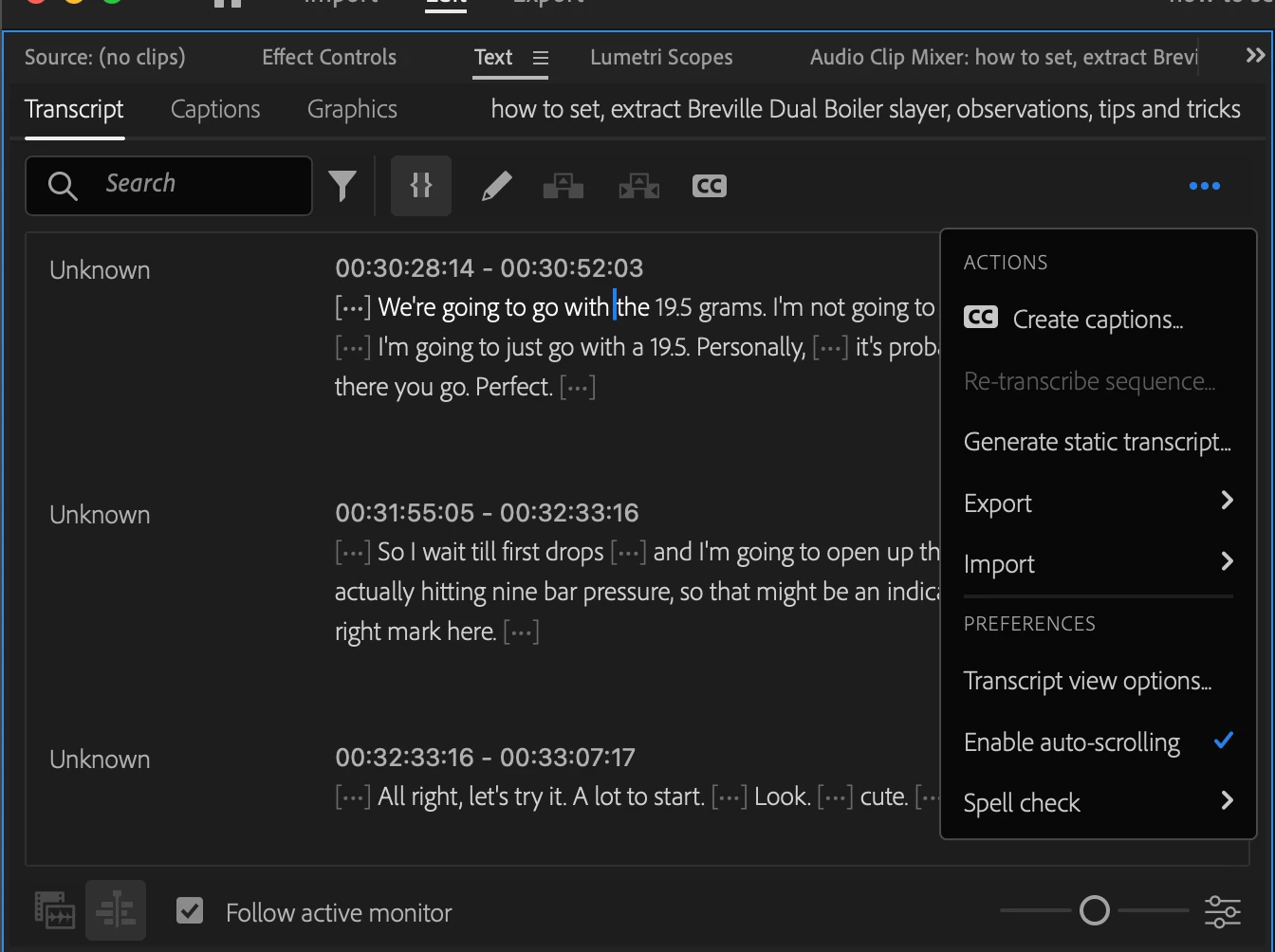 My transcription isn't starting at 0, I can't change it by changing the in and out points. I can't even re-transcribe it for some reason, it's greyed out.