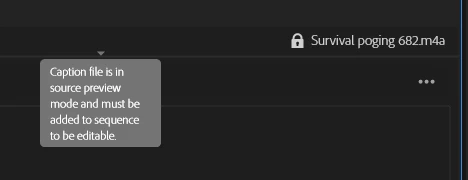 I'm new to Adobe Premiere so sorry if this problem is easy to fix. I'm trying to add subtitles to a clip. However I'm unable to click on the add captions button. I do see a lock with "caption file is in source preview mode and must be added to sequence to be editable". I've closed the source preview, however that doesn't fix the problem. Next to that I've tried to click on "Add Edit" under Sequence. No success. ".