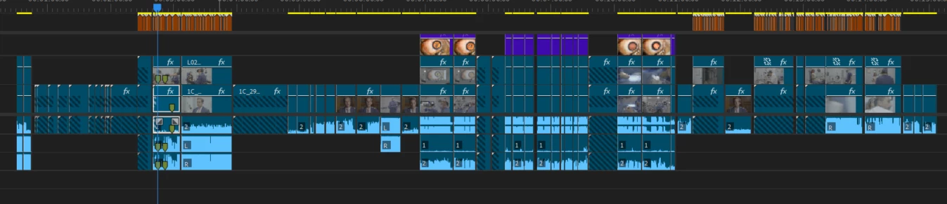 We are editing on Sony Fx6 (MXF) and Sony Fx3 (mp4) media (4K) with sound in the clips (not external).