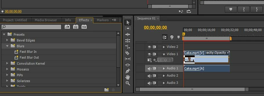 I am trying to apply a blur effect to my clip – the whole of it. However when I click on Blurs and drag it to the right onto the clip, it just doesn’t work. I think I have tried to drag it to anywhere possible on the right hand side panel but to no avail. Strangely, the Fast Blur In and Fast Blur Out effects work ok, but I want this blur effect to apply to my clip for its whole duration, not just at the beginning or the end of the clip. What am I doing wrong? Please help.