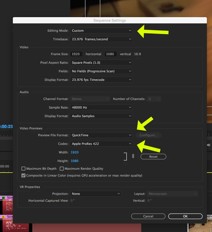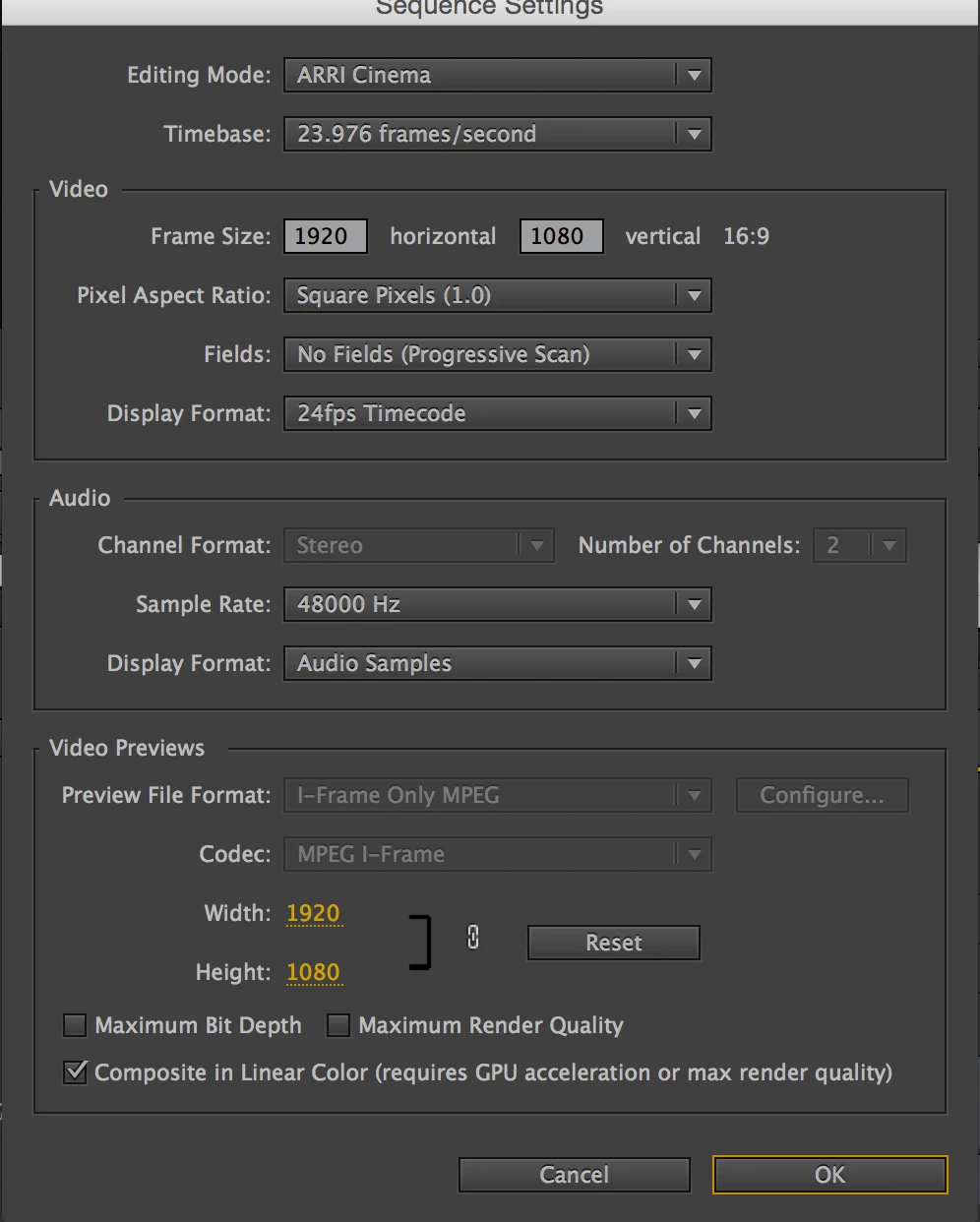 I just cut a trailer for my first feature, my first major project on Adobe. All the forums said to simply open a new sequence, and when I drag over the first clip, it would automatically change the timeline to let me edit it natively, even though it wouldn't say it. Attached are my sequence settings.