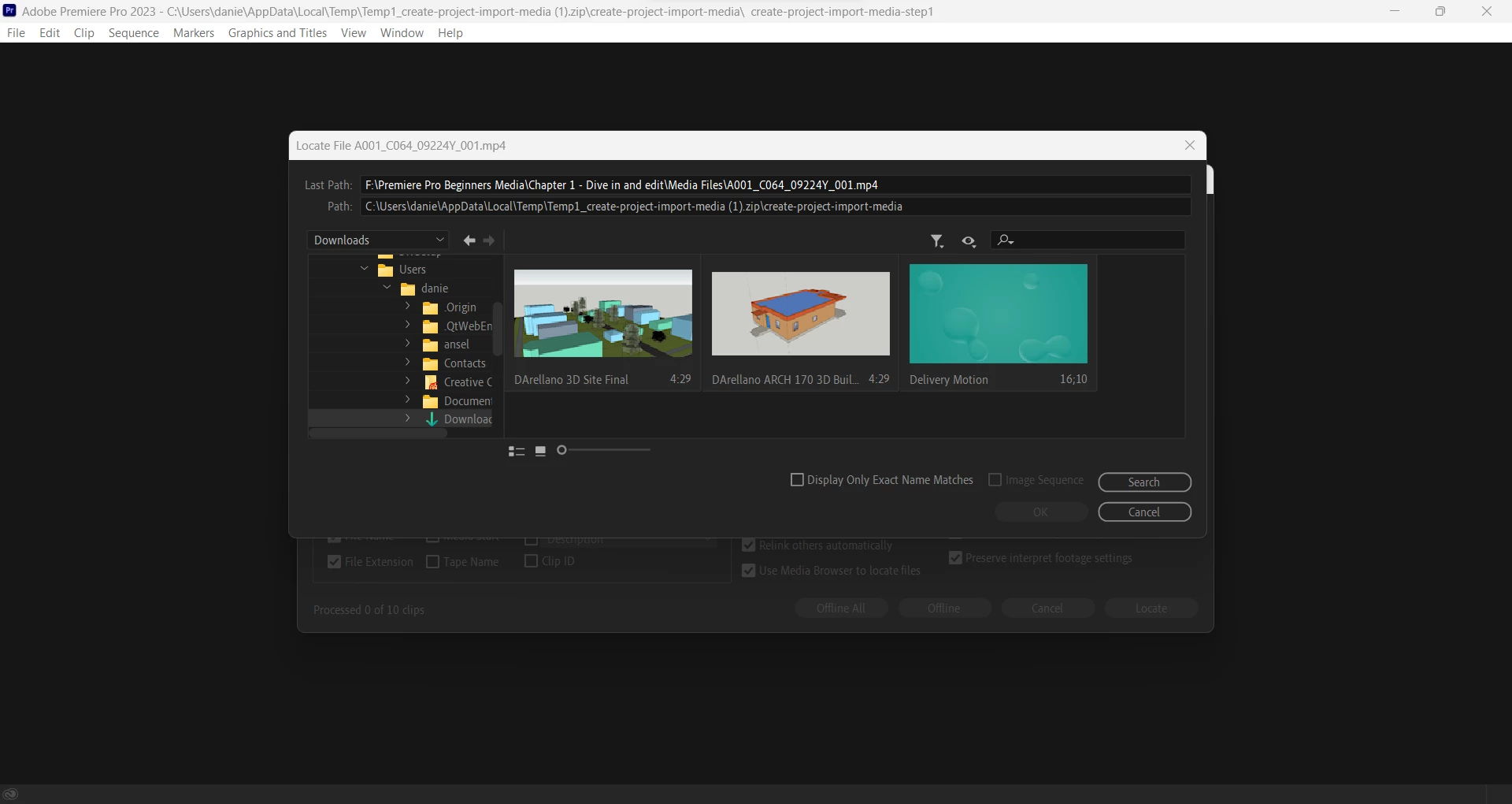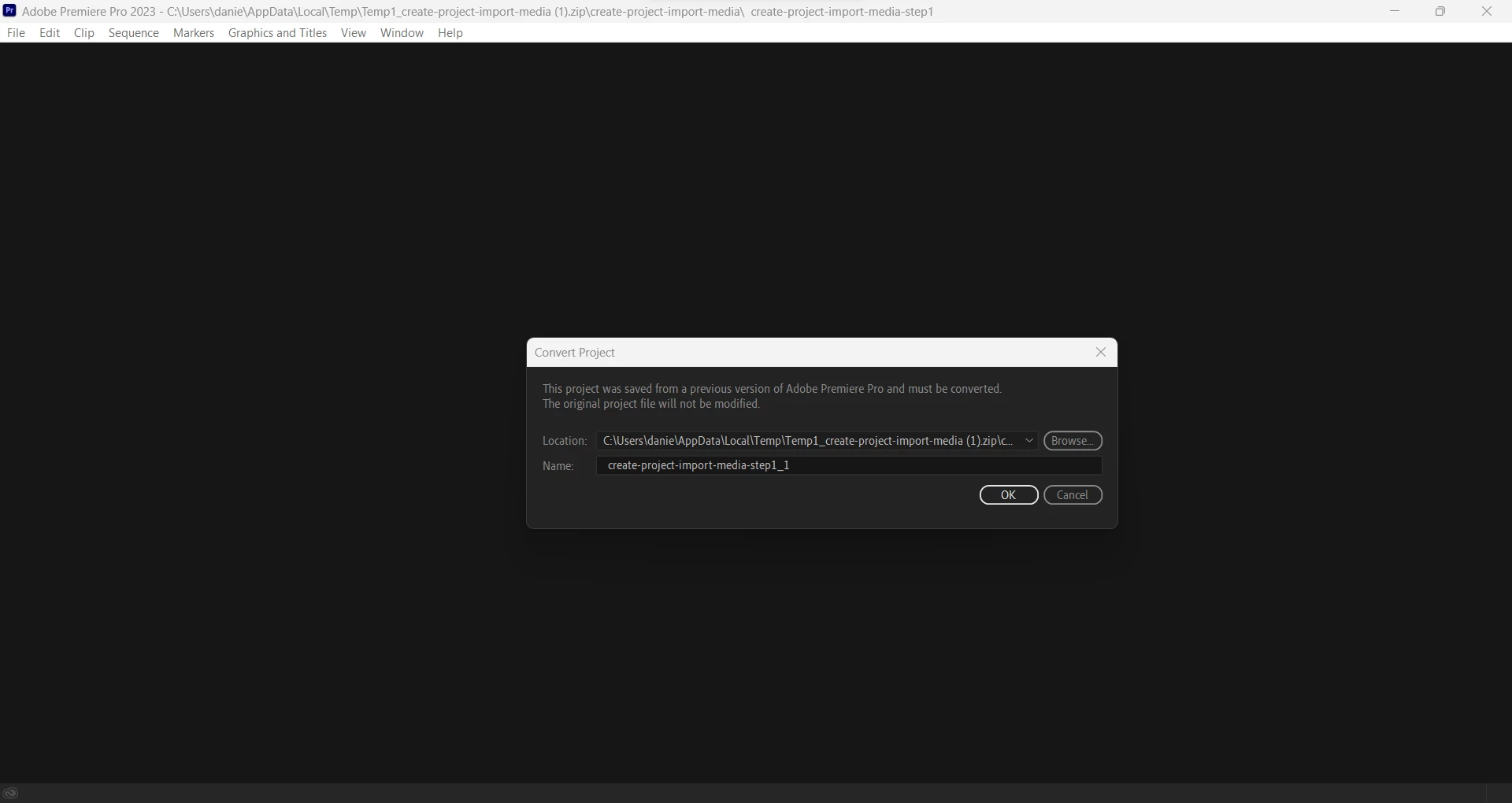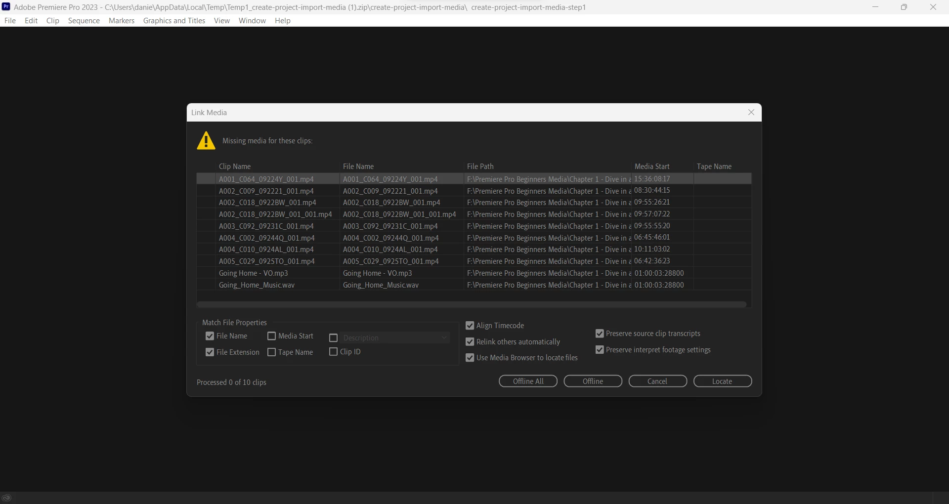 I'm trying to use the tutorials on Adobe's website (View all Adobe Premiere Pro tutorials). Everything downloaded perfectly, but when I go to import the files, the following shows up: