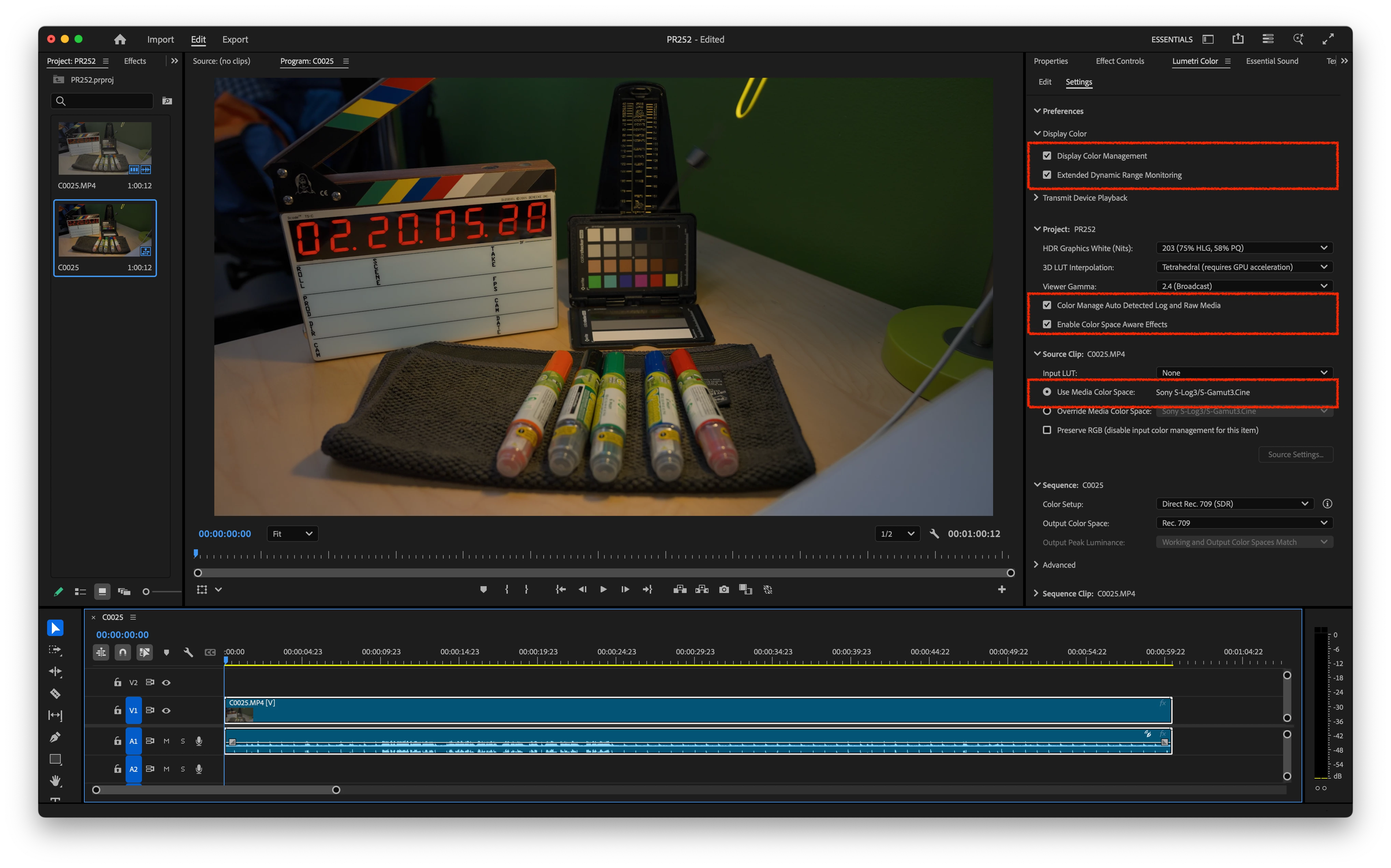 When clicking on a clip, I typically go over to the top left corner in the Effect Controls Panel + use the source drop down box to change it to S-LOG --> As you can see in this screenshot, you click the source and there is no drop down box to switch it.