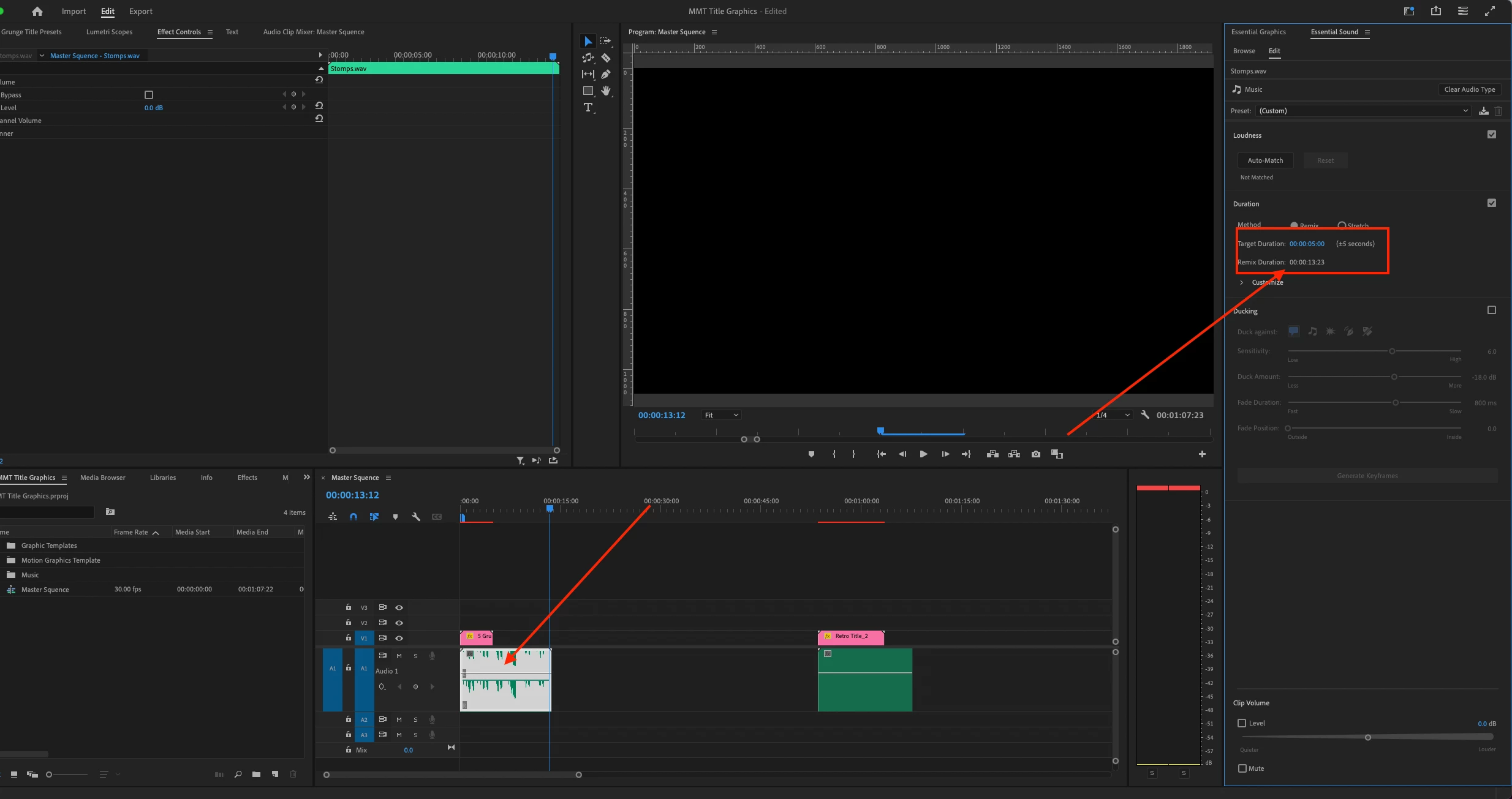 I have a handful of 5-second graphic logos I'm trying to remix music to. But for some unknown reason when I use the remix feature and drag the audio clip to match the 5-second video graphic, it won't stay there, it just extends out to about 13 seconds. I tried changing the duration field in the Remix properties > essentail sounds panel to 5 seconds, but it won't stay at that duration. Next to the duration field it says (+/-5 Seconds) but it won't see to go down to 5 seconds.