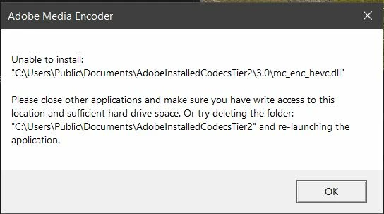 I have tried all solutions found through google and used the adobe cleaner to do a fresh install of premiere, nothing seems to get this DLL to load properly. I do have an active Adobe CC subscription as well.