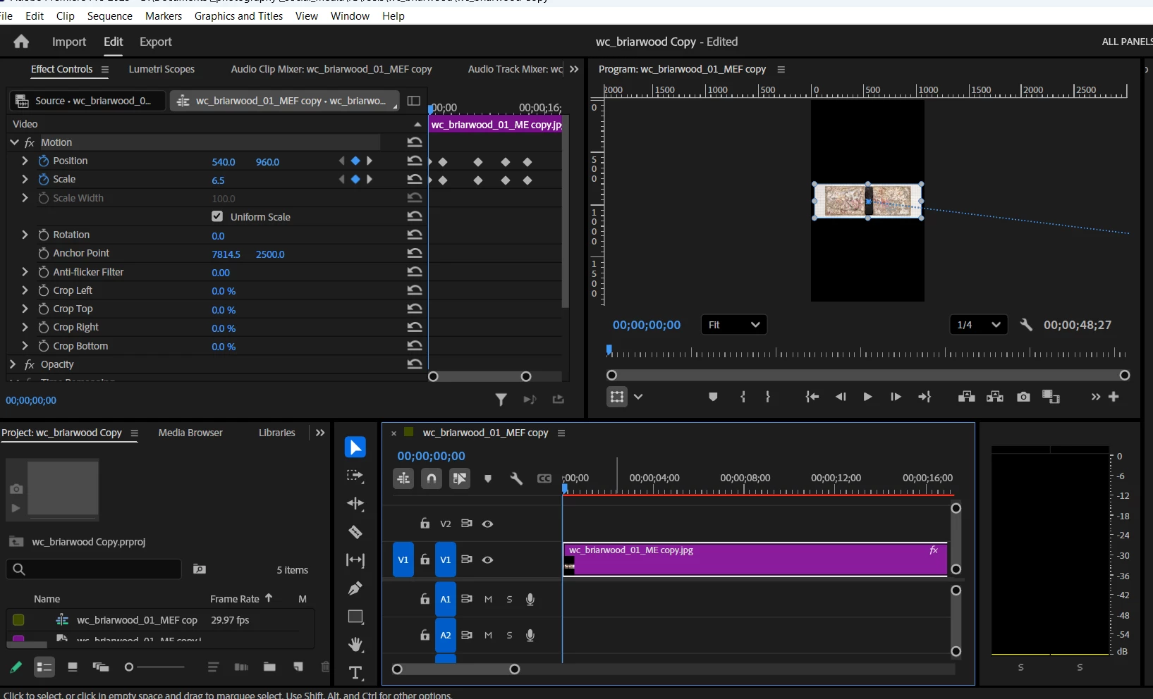 3. Near the end, when you see the current time marker snapping to the keyframes, I'm dragging it while holding down the Shift key because I want the snapping to show me exactly where the media is at each keyframe. This is one of the ways to figure out whatever the heck I have just been doing, or verify that what I did was what I wanted.