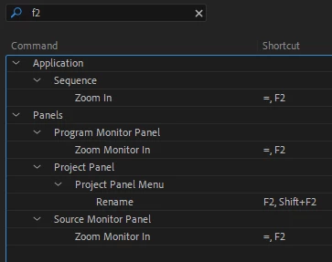 I chose up arrow key for zooming into the sequence and alt-q for setting the mark in. Both work in the timeline but not in the monitors. The up arrow key works as expected in the source monitor but keeps its default behaviour (jump to previous clip) in the program monitor.