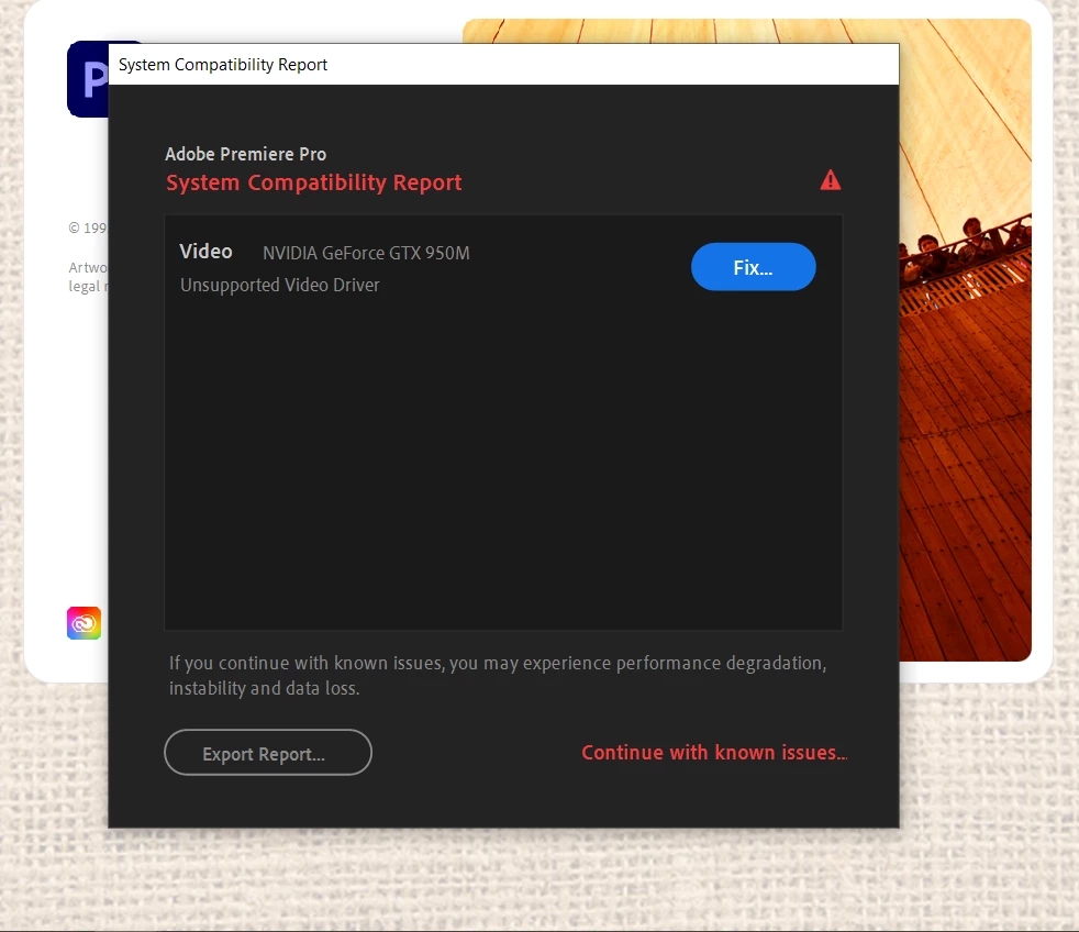 Unsupported Video Driver - NVIDIA GeForce GTX 950M