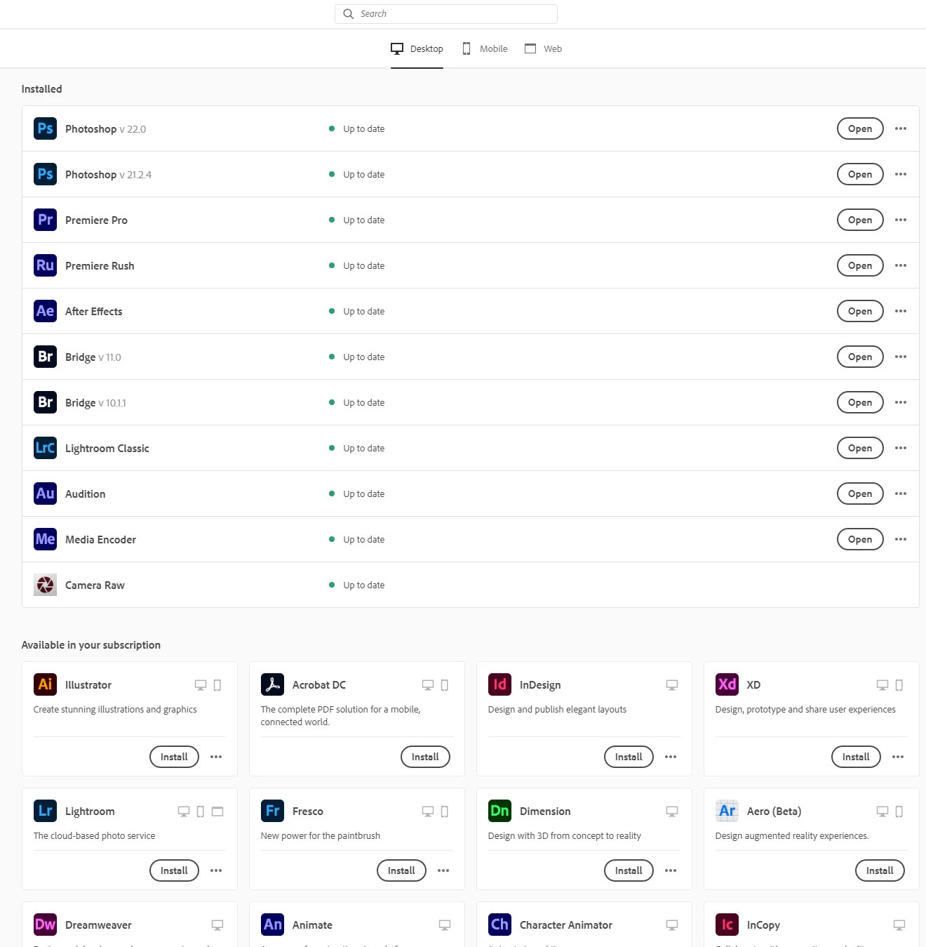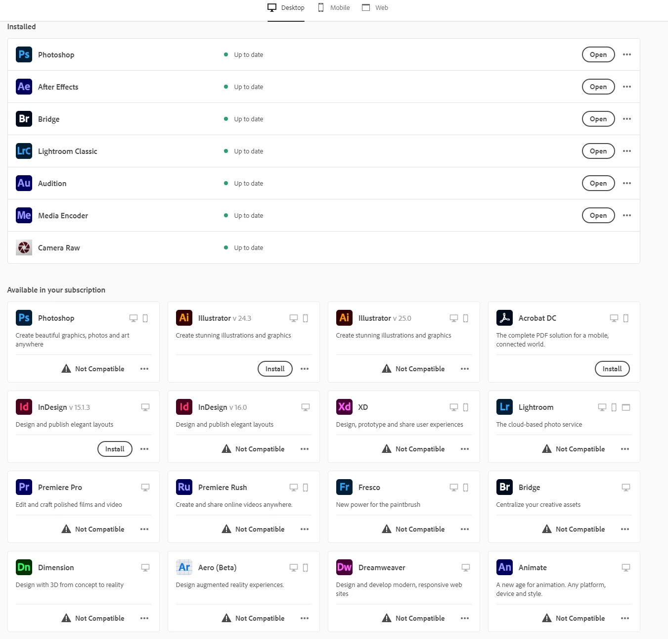 Please take a look at the screenshots. I can open Photoshop, Audition, After Effects, and Lightroom Classic.