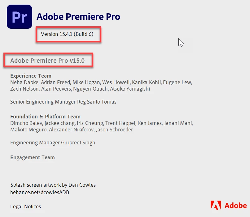Version Mismatches in "About" Premiere Pro 22.3.1