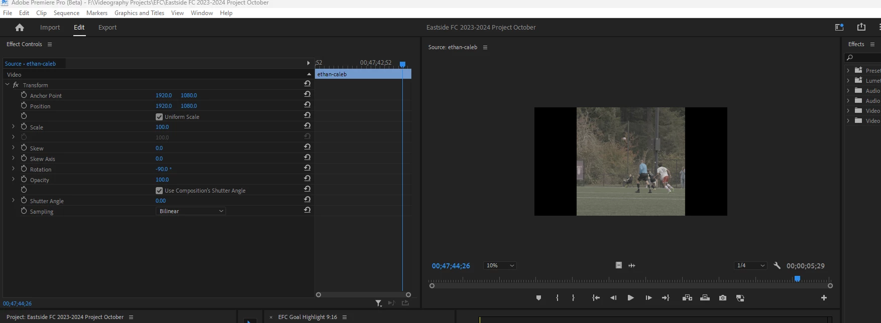 Vertical content issue. Transform effect not affecting source monitor.
