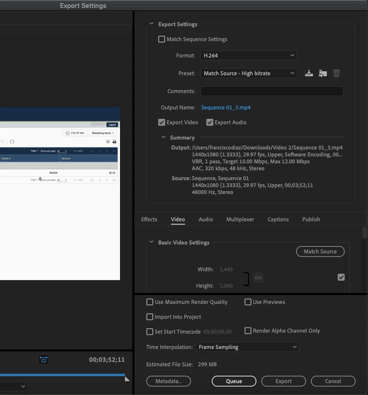 I am currently working on a video and when I export the footage is coming out blurry. I am using a macbook air and this are the settings I am using to export it.