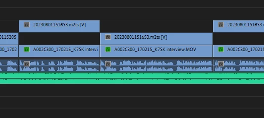Hello there, im editing a 2 camera source video with audio that i syncronized before editing, now after completing my edits a few days later after opening the premiere project, some of my video doesnt match up with my audio anymore. Please Please Help!! ive tried changing versions to every one ive seen recommended, still broken. Ive had this happen on other projects and its insanely frusterating and expensive... ill drop a photo of my timeline below.. audio track 2 is just music. V1 is the one becoming unaligned, V2 is just fine, which i what the audio is linked to.