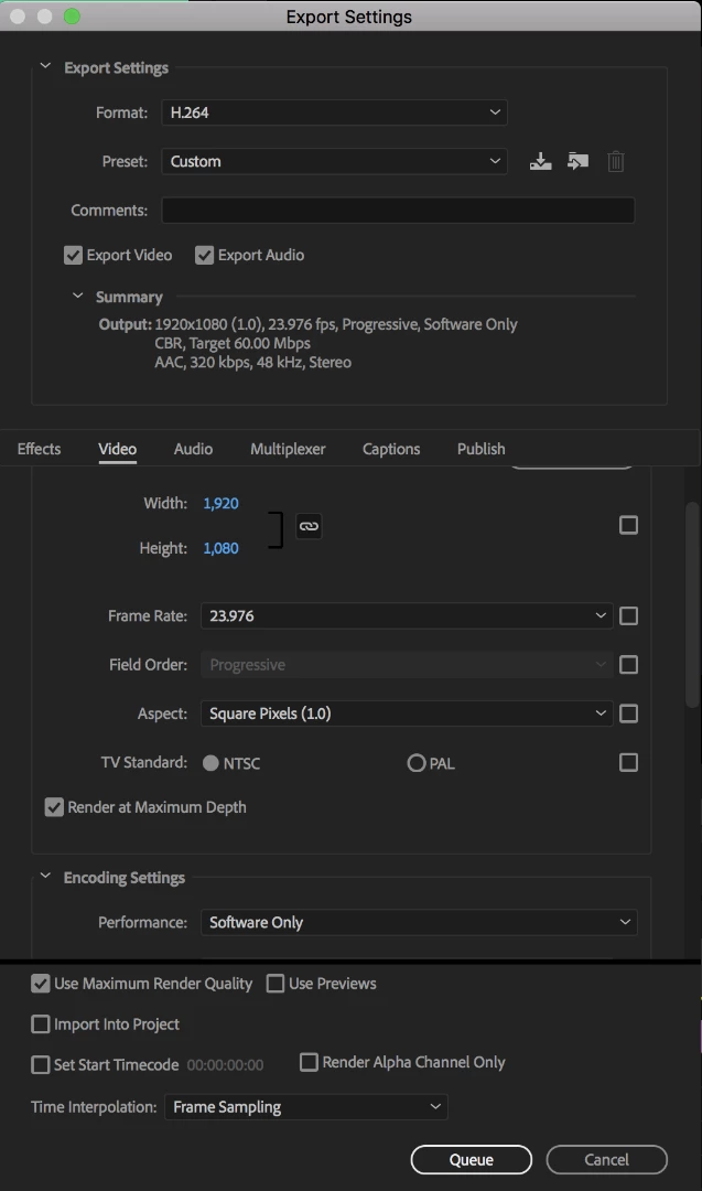 Here is what my export setting look like: