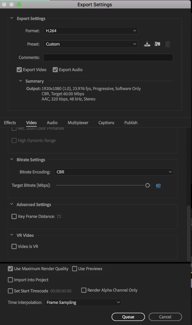 I've also tried exporting through Media Encoder, and that seemed to make no difference. (I have Encoder open during these screenshots, which is why there's no 'Export' button I believe, to do it within Premiere)