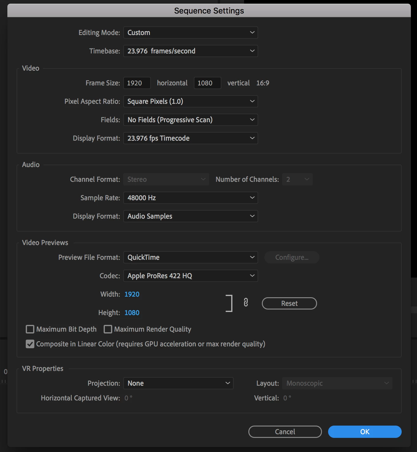 Previews are rendered at the resolution specified in your sequence settings, and the default is for the preview to match the format of the timeline.
