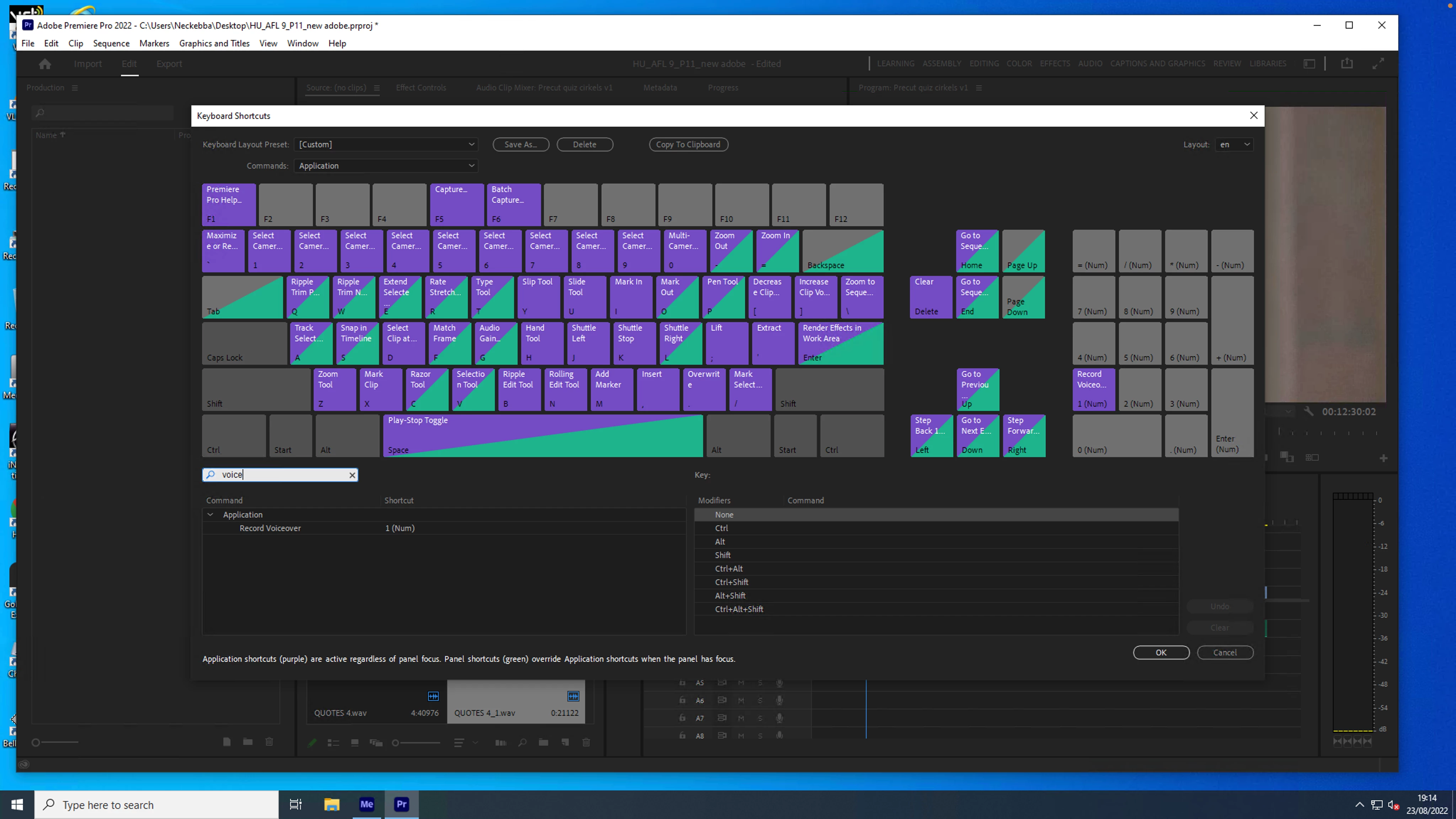 Now normally when the journalsit makes a mistake, we stop and do again or we pick in half the way. The SYmbol on the sequence still works. But i normally use the voice over shortcut (in the screnshot: i added it to the numlock 1 button). And that worked always before.