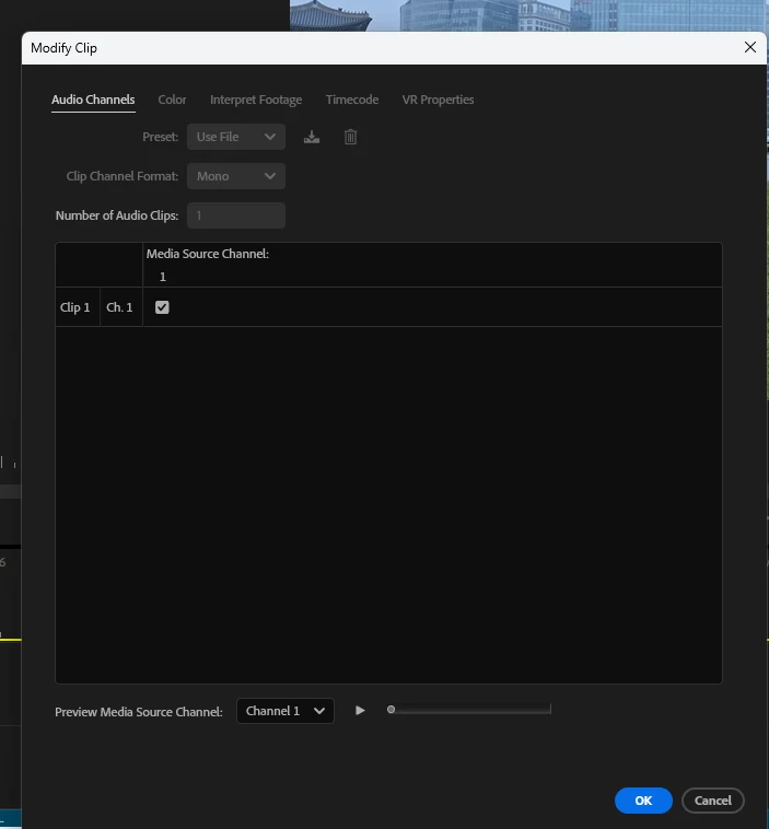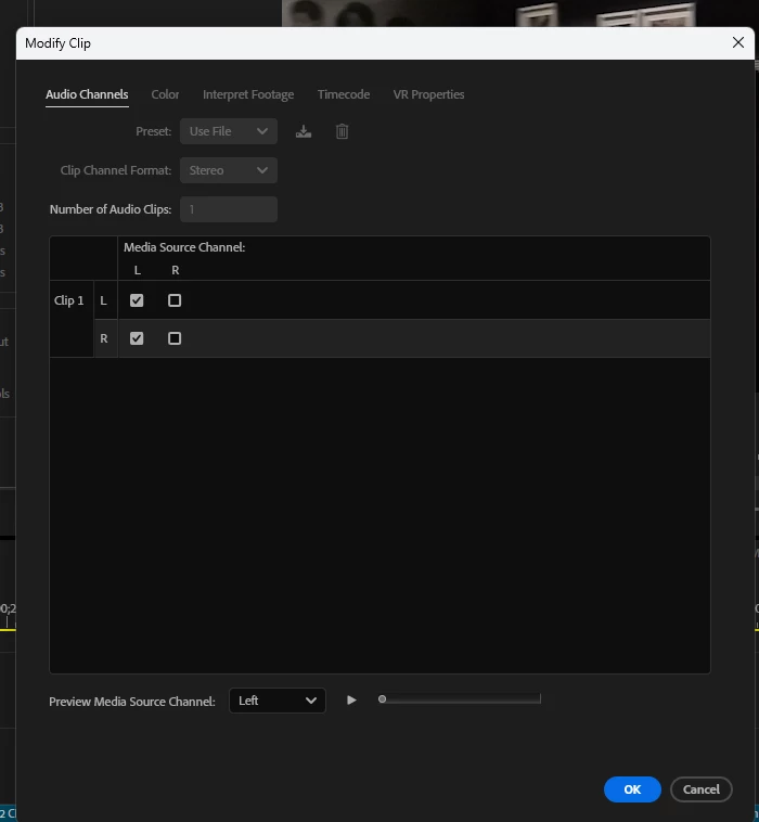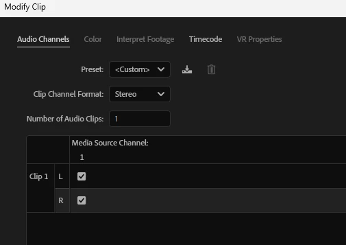 I have at this point 10 sequences and have started to do the voice overs for each. I had completed three and moved onto four when now my audio waveform is now only showing a single mono track of audio. Yes I can go to the Project panel and modify it to Stereo BUT I have tried everything to reset it so I can record it in Stereo. When I go to Audio channel setting it is greyed out showing Mono but if I go back to the previuos sequence it is Stereo. Am I not seeing something or still missing something.