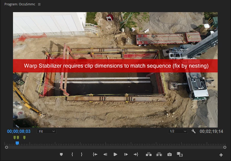 warp stabilizer requires clip dimensions to match sequence ( fix by nesting) HOW