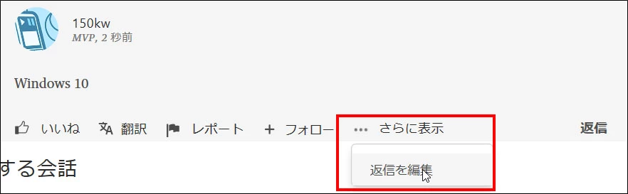 件名(応答・・・・)入力欄を送信した後、その欄下の「・・・ さらに表示」→「返信を編集」をクリックして本文入力欄を開くが、この手順が大変分かりづらい(下図赤枠部)。