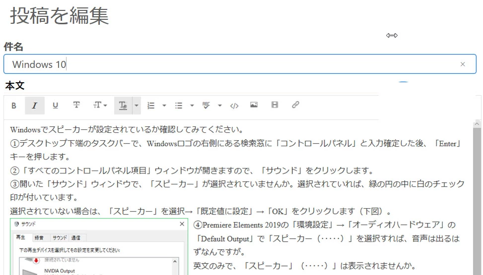 12.画像挿入のある本文のレイアウトが編集時と投稿(送信)後とでは変わってしまう。