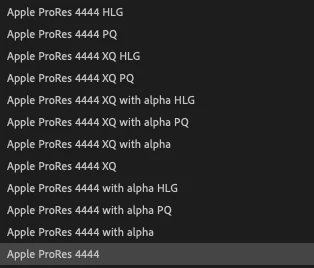 What's are the difference uses and purposes of all these different Prores 4444 export options?