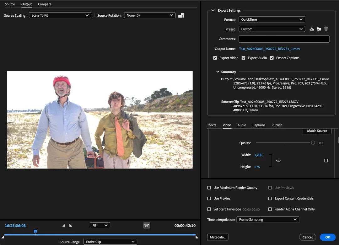 The overexposed look baked into proxies using the preset Apple ProRes 422 Proxy with dimensions downscaled to 1,280x675.