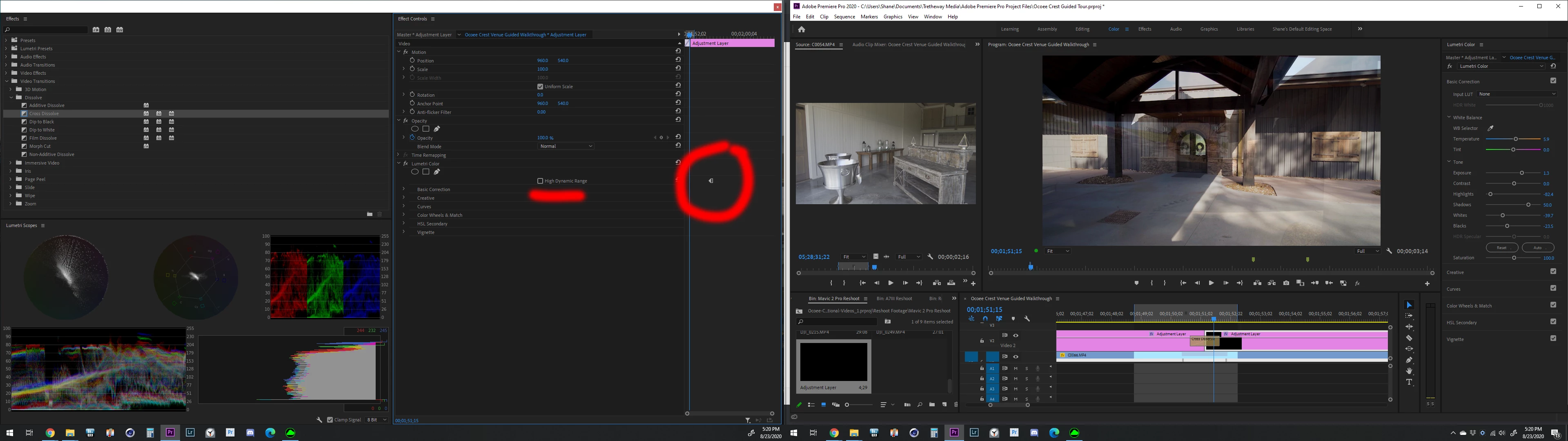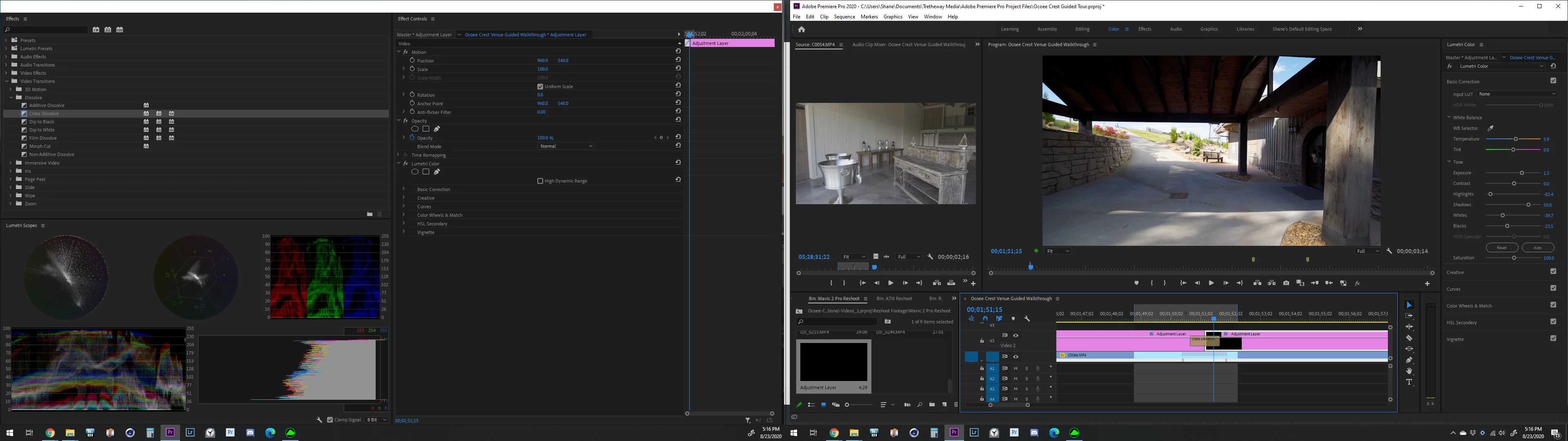 But, because of how I did the color correcting on adjustment layers, I have to cross dissolve them as well. Worked last time.