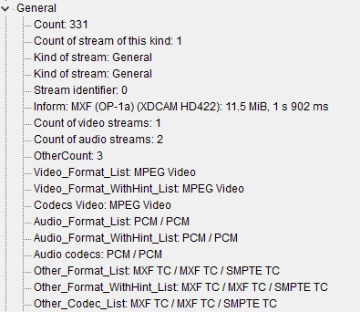 when checking with MediaInfo. In reality, it clearly says MXF(OP-1a) (XDCAM HD422).