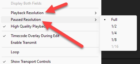 Ok, so the Playback and Pause resolutions where the same, BUT High Quality Playback was unchecked. Selecting the High Quality Playback seems to have fixed the issue. Thank you!