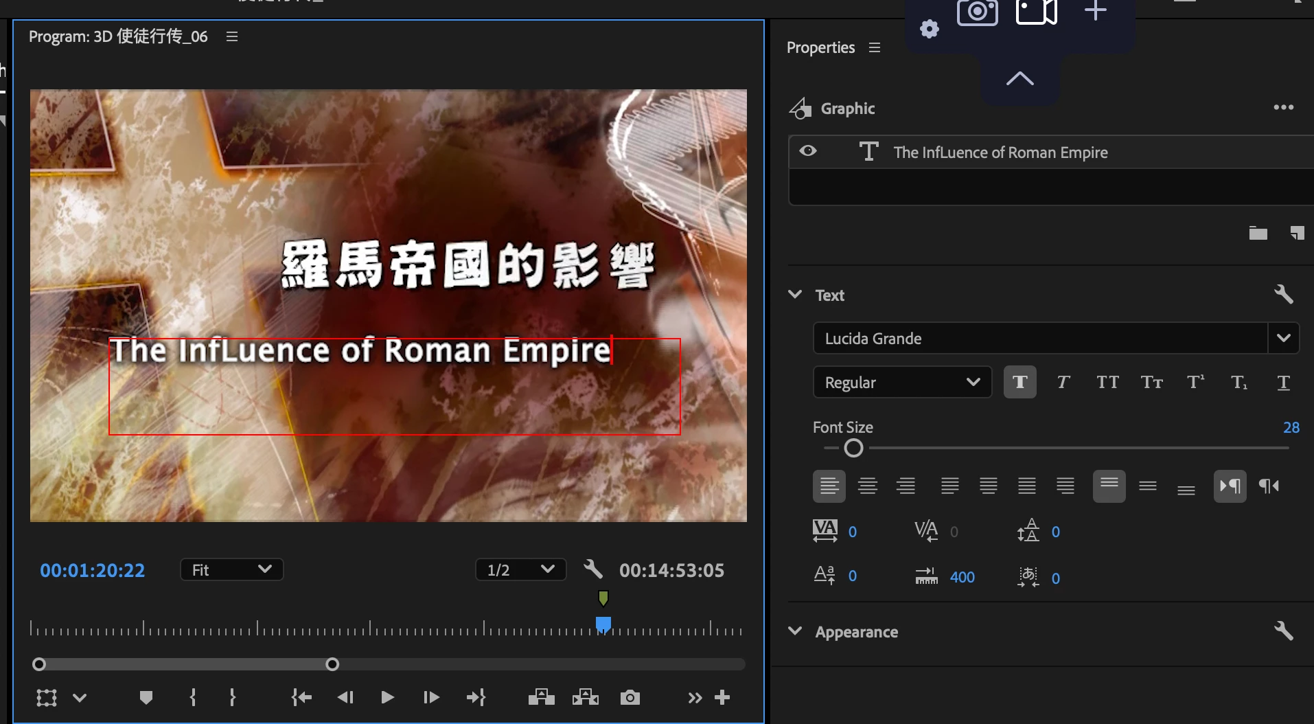 When typing the letter l as inserting Text, the whole sentence disappeared from the Program Monitor